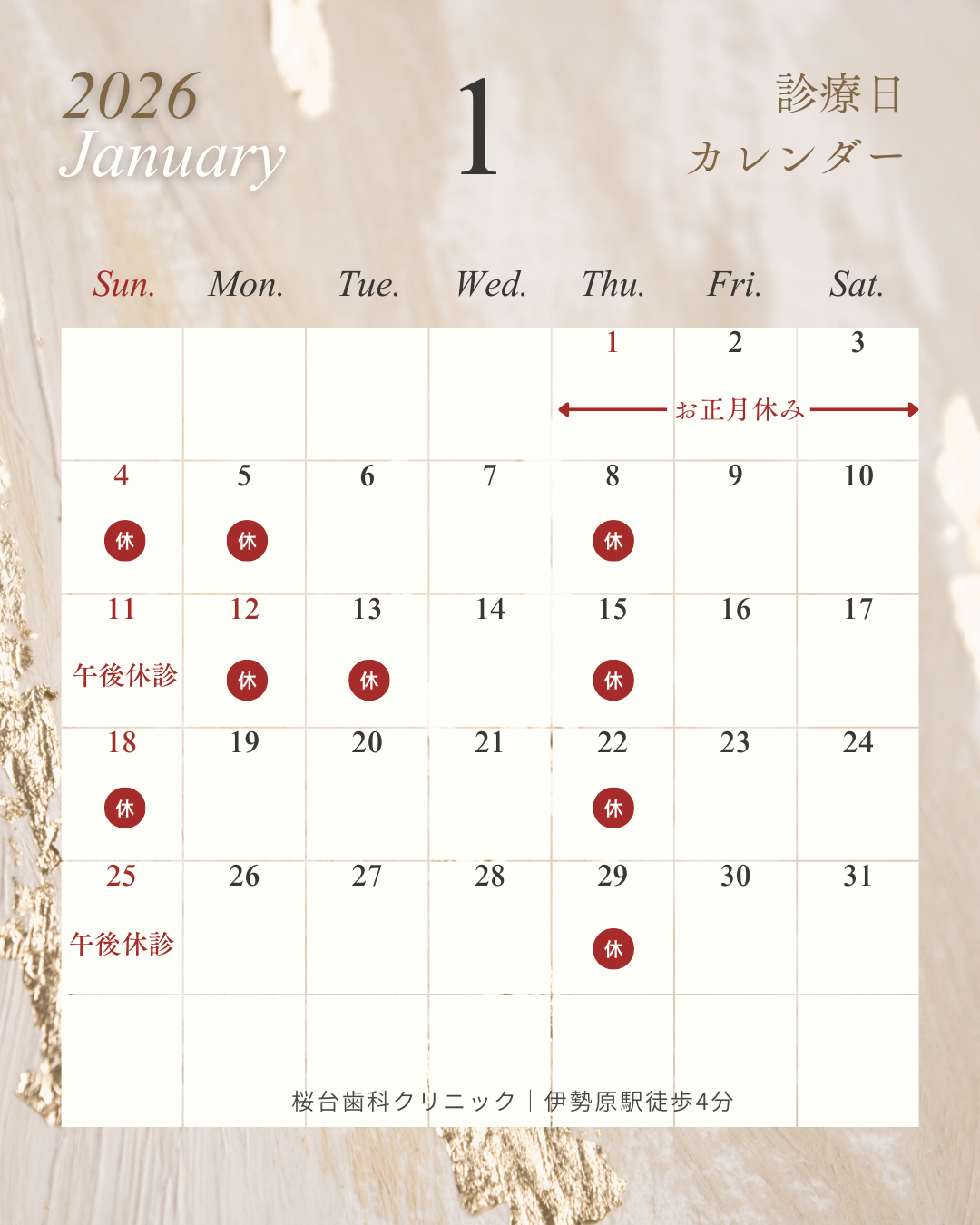 【1月の休診日】