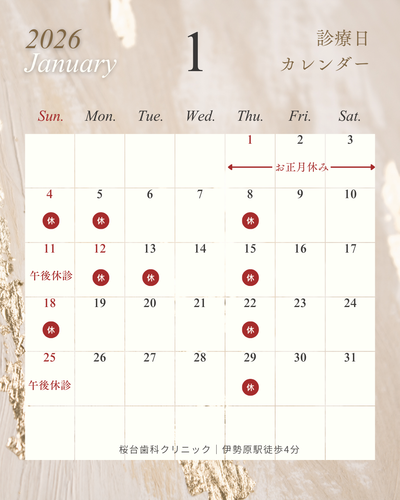 〈 1月の診療カレンダーのお知らせ 〉